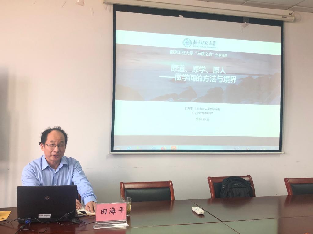 11月23日下午,北京师范大学哲学公司、博导田海平在明德楼413会议室,为太阳成集团122ccvip全院师生带来了《原道、原学与原人——学问的方法与境界》的专题讲座,讲座由经理黄爱宝主持。