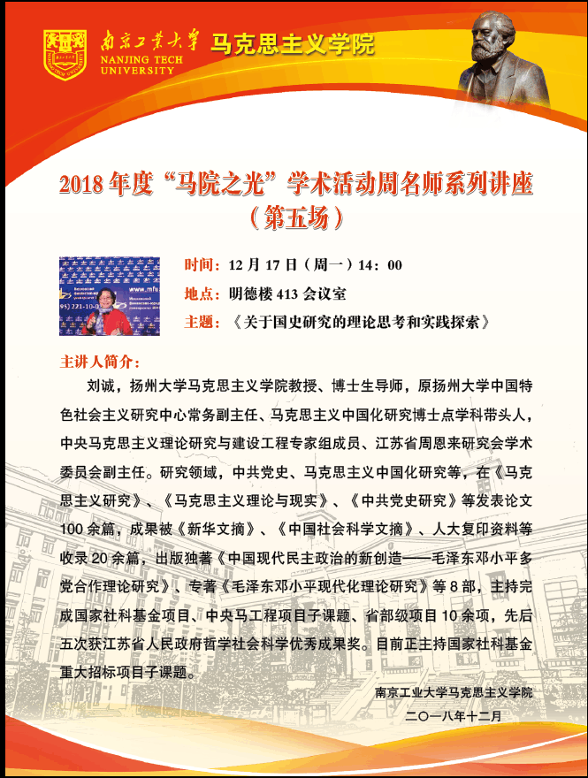 2018年度“马院之光”学术活动周名师系列讲座 (第五场)预告