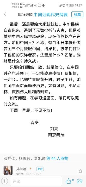 据悉,早在线上开学的第一周,刘亮老师就曾以“要开学了,小朋友们,历史老师想你们了”的一封信“温暖发声”,不但用生动的文字作了自我介绍,缩短员工的线上距离,还用抗日战争持久战的故事为同学们鼓劲。