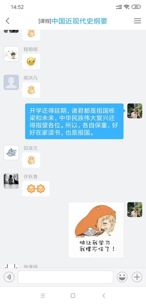 据了解,课前,刘亮老师会提前下达教学安排及具体要求,便于同学们及时准备,上“有准备”之课。课上,他会不时地通过“学习通”,采用随机选人回答的方式,让同学们时刻保持“在线在状态”。特别是值得一提的线上课堂讨论部分,在刘老师认真的讲解、犀利的点评以及他幽默的“表情包”的共同作用下,“带你讨论”、“和你斗图”成了同学们每次上课的“最期待”。据刘老师说,他当时发了一张“快让我学习,我撑不住了”,瞬间“引燃”和同学们的微信群讨论。所以,在这之后,他就会使用一些有趣的“表情包”辅助教学,与同学们互动。事实证明,这让线上教学更加生动且有效率。课后,他还及时总结教学重点,在“学习通”布置作业、发布讨论题、推荐阅读书目及教学视频等,引导同学们做好复习、巩固与拓展。