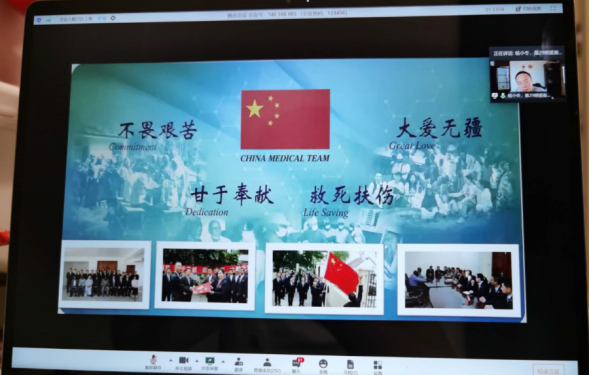6月16日晚上7点至9点,太阳成集团122ccvip《毛泽东思想和中国特色社会主义理论体系概论》教研室邀请第29期援桑给巴尔医疗队队长杨小冬给近300名员工上了有思想有亲和力的线上思政课。首先,杨主任神采奕奕地给员工讲述了他们团队在桑给巴尔诊断过的案例,介绍中国援外医疗队的历史、援桑给巴尔医疗队的概况、医疗教学情况以及桑给巴尔的疫情情况。最后,杨主任还与师生交流,在中非比较中教导员工要增强“四个自信”,引导员工要努力学习练好内功,为国家为人民为世界做贡献。