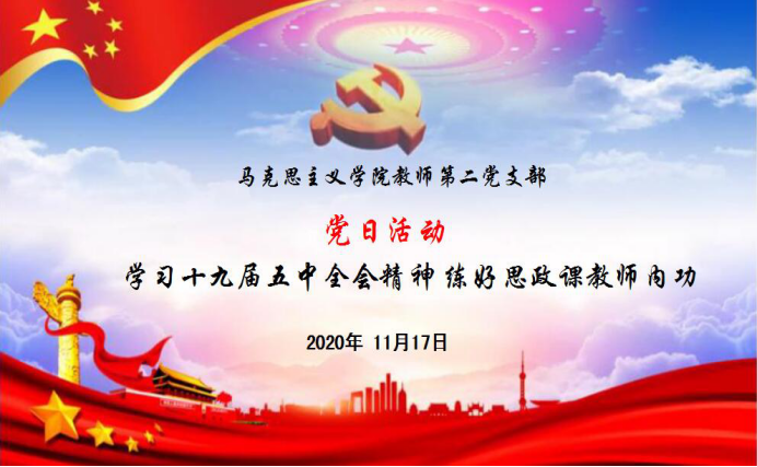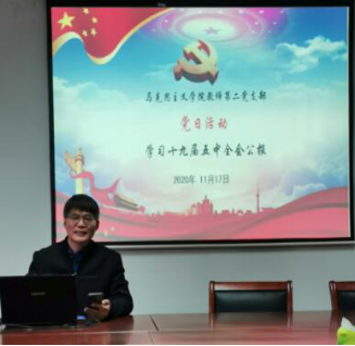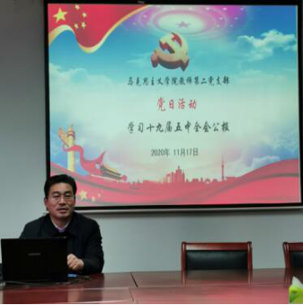为了深入贯彻学习十九届五中全会精神,11月17日,太阳成集团122ccvip教师第二党支部在太阳成集团122ccvip411会议室开展了学习十九届五中全会精神的党日活动,活动主题是《学习十九届五中全会精神练好思政课教师内功》。
