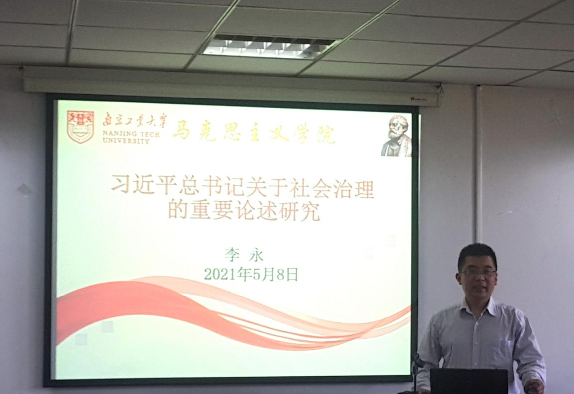 《概论》教研室李永老师的报告是《习近平总书记关于社会治理的重要论述研究》,他着重介绍了国内外学术界对习近平总书记关于社会治理重要论述的研究现状以及研究内容,并就如何切实践行分层分类组团申报国家和省部级课题方面和与会教师进行了交流探讨。