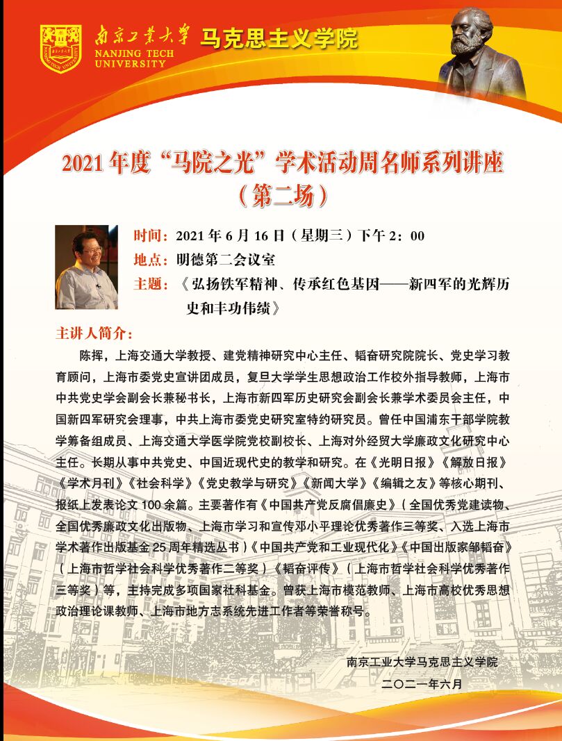 2021年度“马院之光”学术活动周名师系列讲座 (第二场)预告