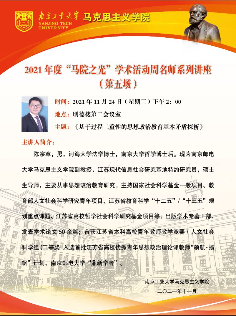 2021年度“马院之光”学术活动周名师系列讲座 (第五场)预告