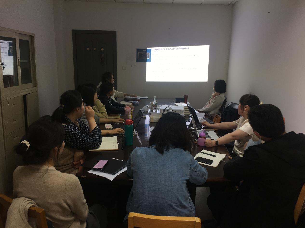 本次集体备课会包括三个环节。首先,由高军老师传达了近期公司相关会议精神;其次,《新中国史》朱嫣丹老师围绕“建设社会主义文化强国”,《社会主义发展史》课程汤洁老师围绕“空想社会主义的产生与发展”分别进行了示范教学,汪俞辰、吕哲等老师进行了点评和讨论。最后,集体商议了下学期课程安排以及示范教学安排等事宜。