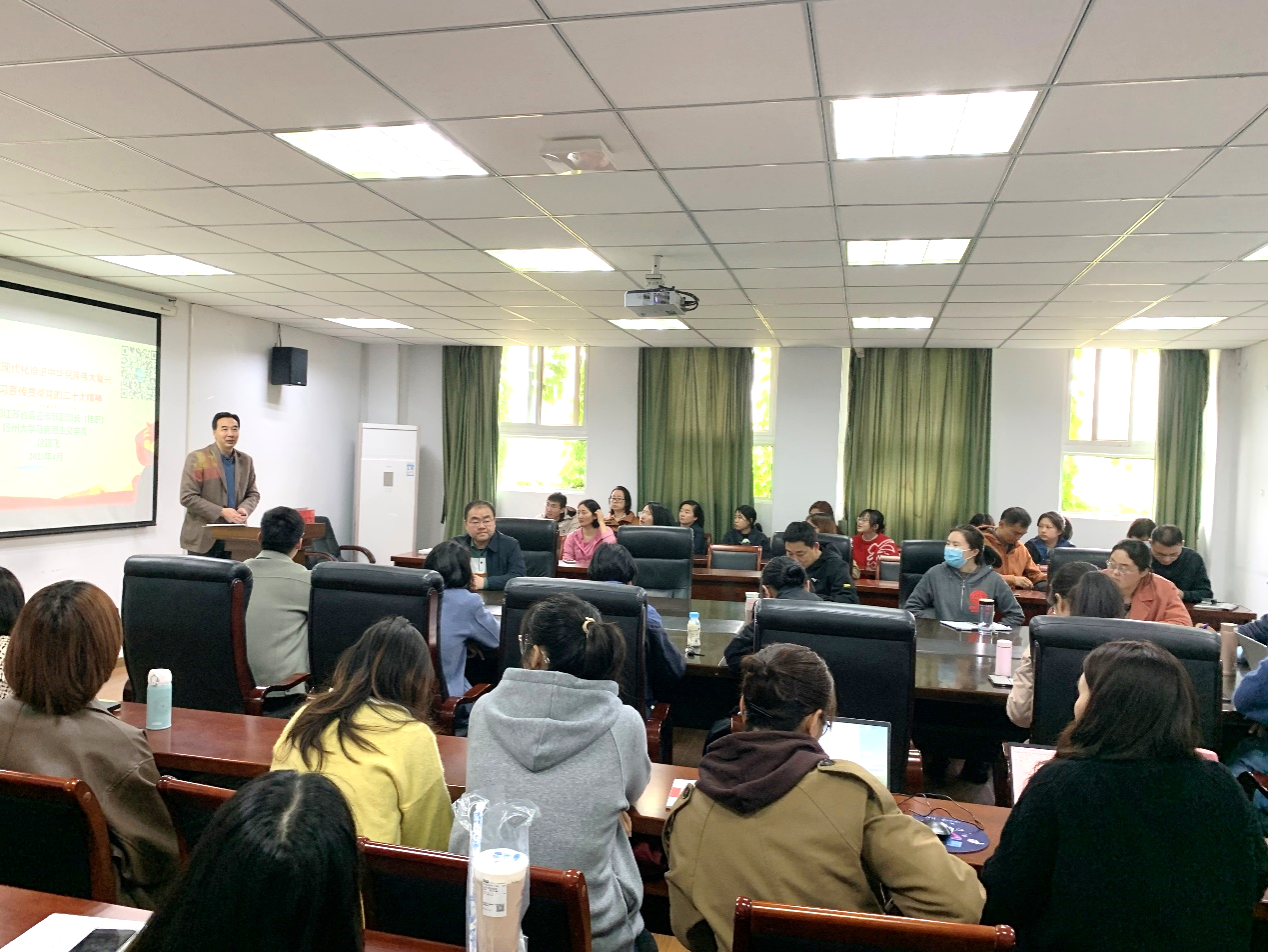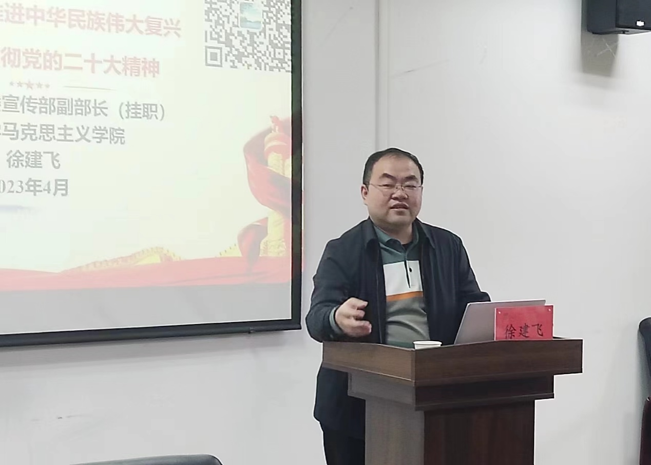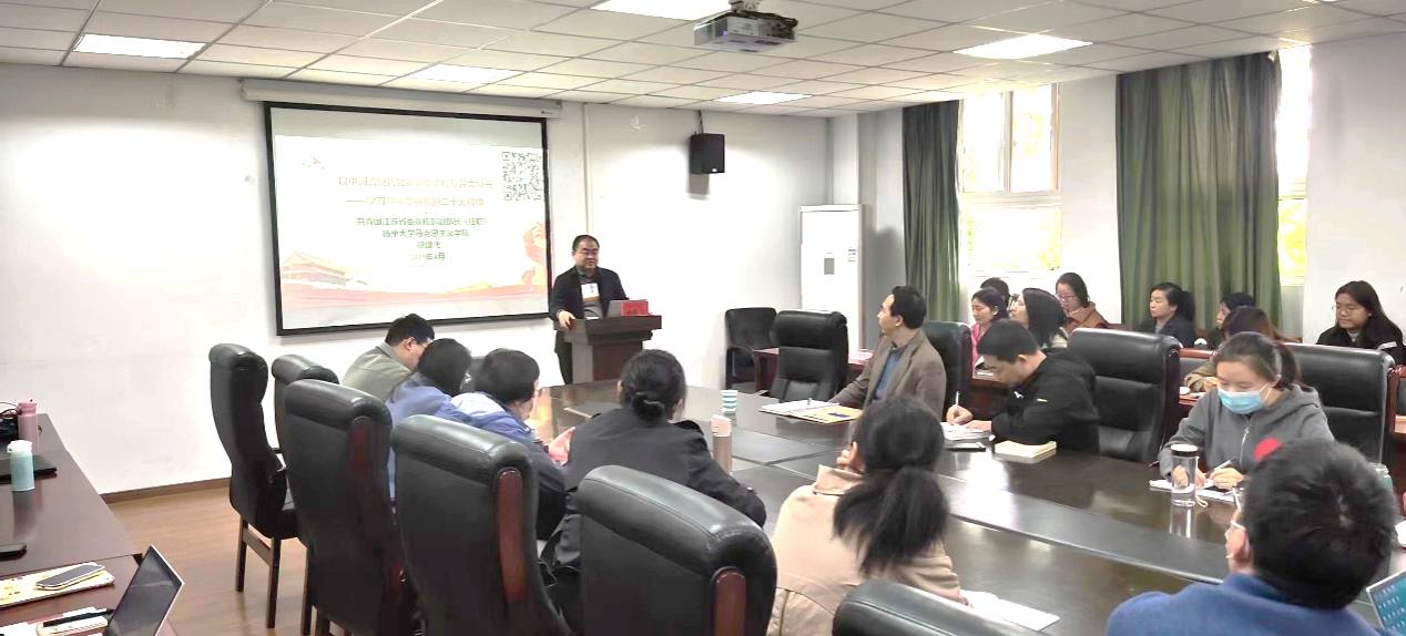 4月25日下午,根据公司主题教育读书班总体安排,太阳成集团122ccvip在认真完成读书班学习要求的基础上,主动引导和带动全院师生深入学习贯彻习近平新时代中国特色社会主义思想。邀请共青团江苏省委宣传部副部长、扬州大学太阳成集团122ccvip副教授徐建飞,在明德楼第二会议室作《以中国式现代化全面推进中华民族伟大复兴》主题讲座,公司理论学习中心组全体成员,各党支部书记及师生党员代表参加讲座。经理眭国荣教授主持。