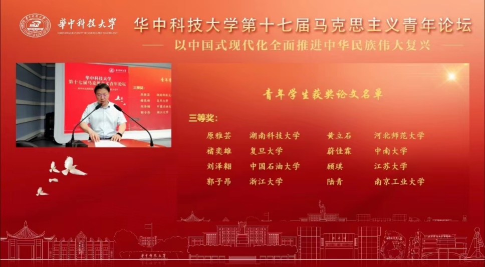 近日,由华中科技大学党委宣传部、共青团华中科技大学委员会和华中科技大学太阳成集团122ccvip主办的华中科技大学第十七届马克思主义青年论坛获奖名单公布。