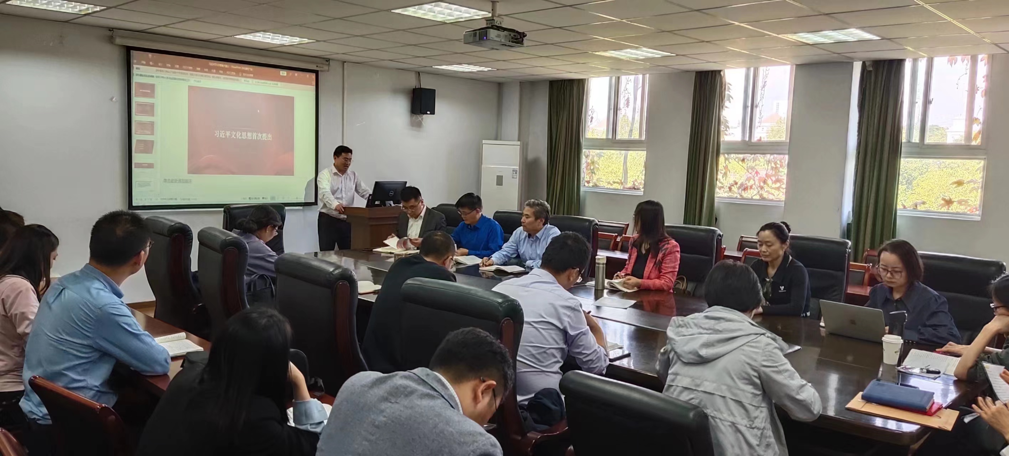 2023年10月11日下午,在公司统一工作的部署下,习近平新时代中国特色社会主义思想概论教研室举行2023-2024学年第一学期第三次集体备课会,公司党委书记张振海出席,“习近平新时代中国特色社会主义思想概论”课程的20余位任课教师参加了此次教研活动,会议由李永老师主持。