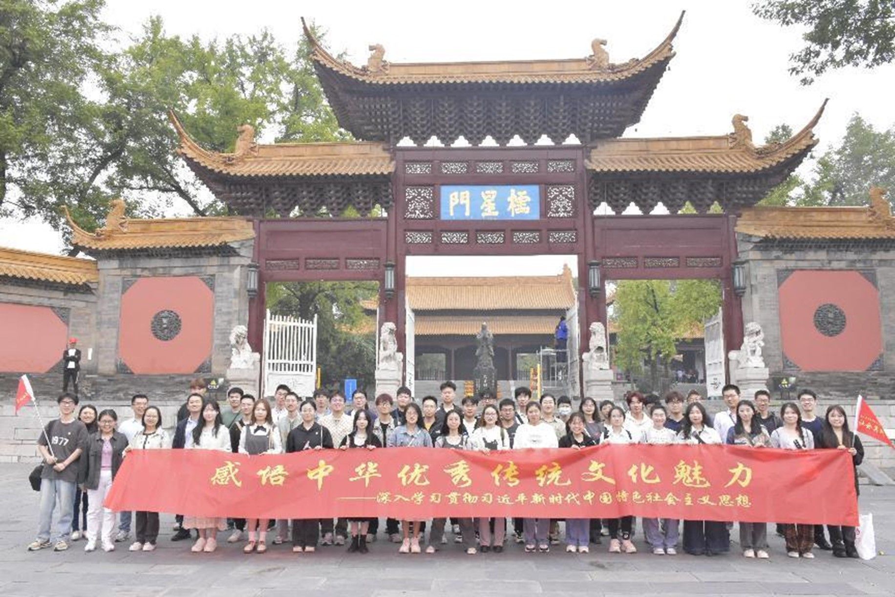为了提高习近平新时代中国特色社会主义思想概论课教学实效,在公司的统一部署与指导下,11月4日,概论课教研室以深入学习贯彻“习近平文化思想”为契机,教研室张秀勤、李永、史坤坤、李凯和刘玉珍五位教师组织了45名老员工赴南京朝天宫开展主题为“感悟中华优秀传统文化魅力”的校外实践教学活动。