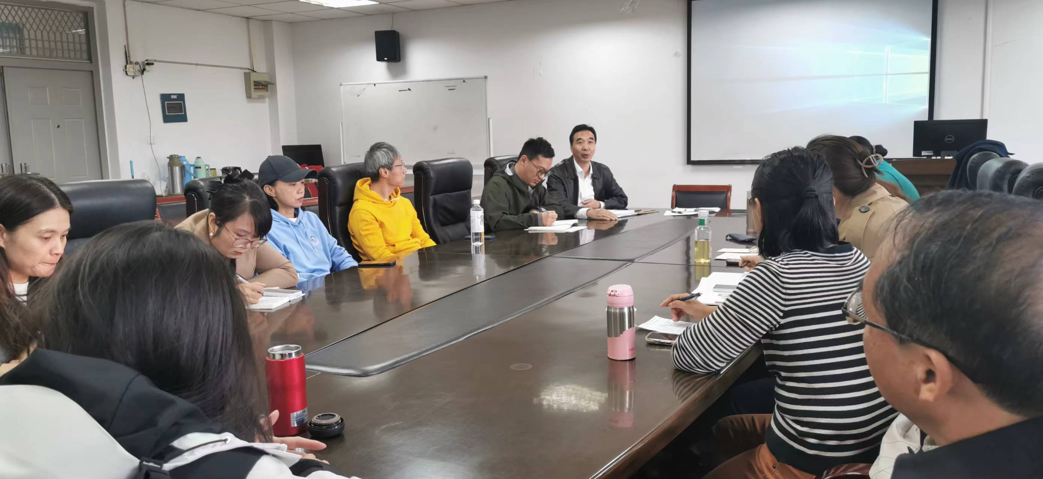 在公司统一工作部署下,2023年11月8日下午,思想道德与法治教研室在明德楼三楼会议室进行了2023-2024学年第一学期第三次集体备课,公司联系领导眭国荣经理莅临指导。本次集体备课主要包括以下内容:第一,教研室全体教师根据公司根据《关于开展2023年“躬耕教坛、强国有我”师德师风建设重点月活动的通知》要求,进行了心得交流和师德警示教育。第二,本次集体备课主讲教师张丽结合习近平文化思想对第四章、第五章的内容重点、难点进行讨论,并与教研室所有教师达成了一致的教学意见。第三,继续重申日常教学工作的注意事项。第四,对照本学期教学进度,继续推进本学期实践教学、期末考试命题等筹备工作。