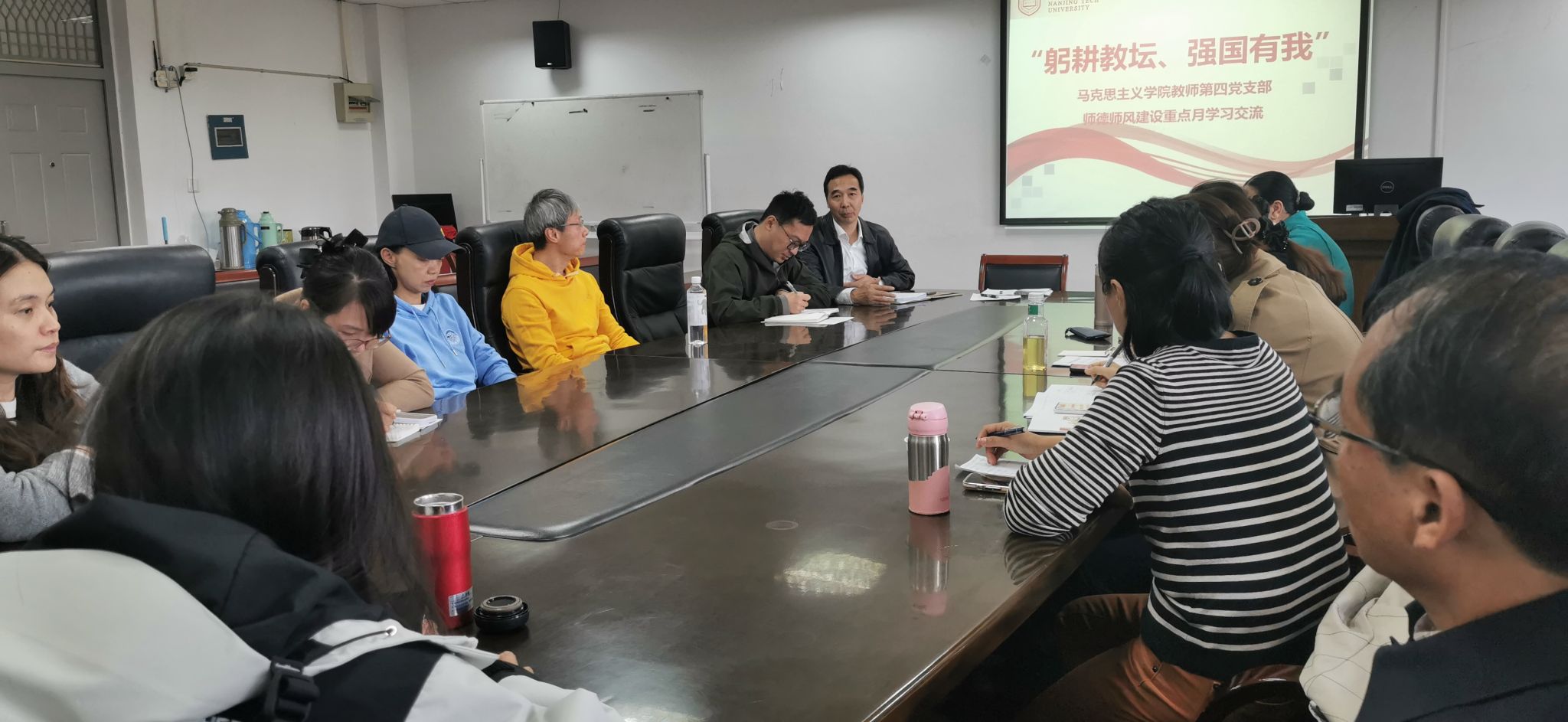 为深入学习贯彻党的二十大精神和习近平总书记关于教育的重要论述精神,加强新形势下师德师风建设,11月8日下午,教师第四党支部全体党员在明德三楼会议室开展“躬耕教坛 强国有我”师德师风建设重点月学习交流活动,会议由支部书记杨瑾主持。