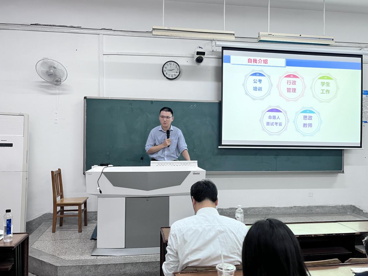 随后,高军老师针对公司员工考公考编的具体情况展开专业指导。高军老师曾担任考公考编命题与面试老师,对中央国家机关及地方省市公务员申论和面试课程有着丰富的教学辅导经验。高老师从考编资讯出发,分享相关资源并耐心解答同学们关于报考的问题;并以备考经验和技巧为落脚点,对行测课程的复习备考进行指导;同时,他还详细介绍了申论的阅卷规则,使在场同学对申论考试有更加清晰的认知。