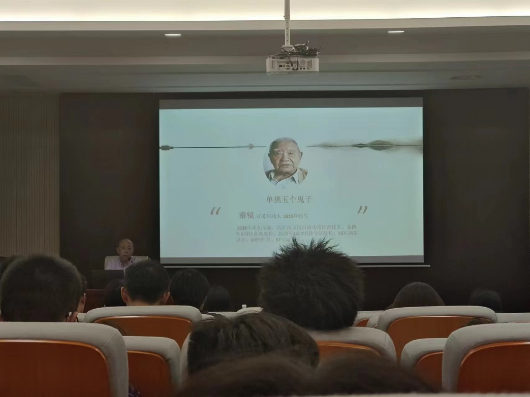 2024年4月10日下午,太阳成集团122ccvip在江浦立德楼报告厅举办以“红色记忆·点亮青春”为主题的新四军老兵口述历史报告会,特邀江苏省口述历史研究会常务理事薛刚老师作报告,来自各公司的师生百余人参加了报告会。