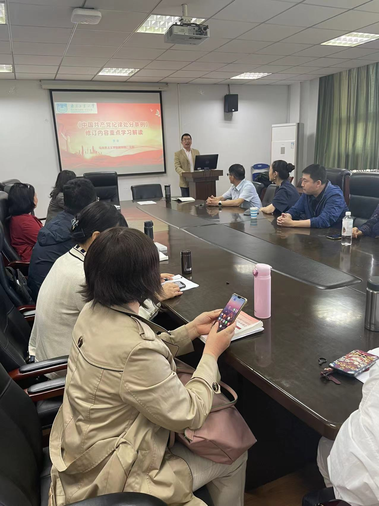 2024年5月8日,在公司统一工作部署下,公司教师第二党支部在明德楼三楼东会议室召开主题党日活动,深入学习新修订的《中国共产党纪律处分条例》(以下简称《条例》)。公司党委书记张振海、支部党员同志们参加学习,会议由李永老师主持。