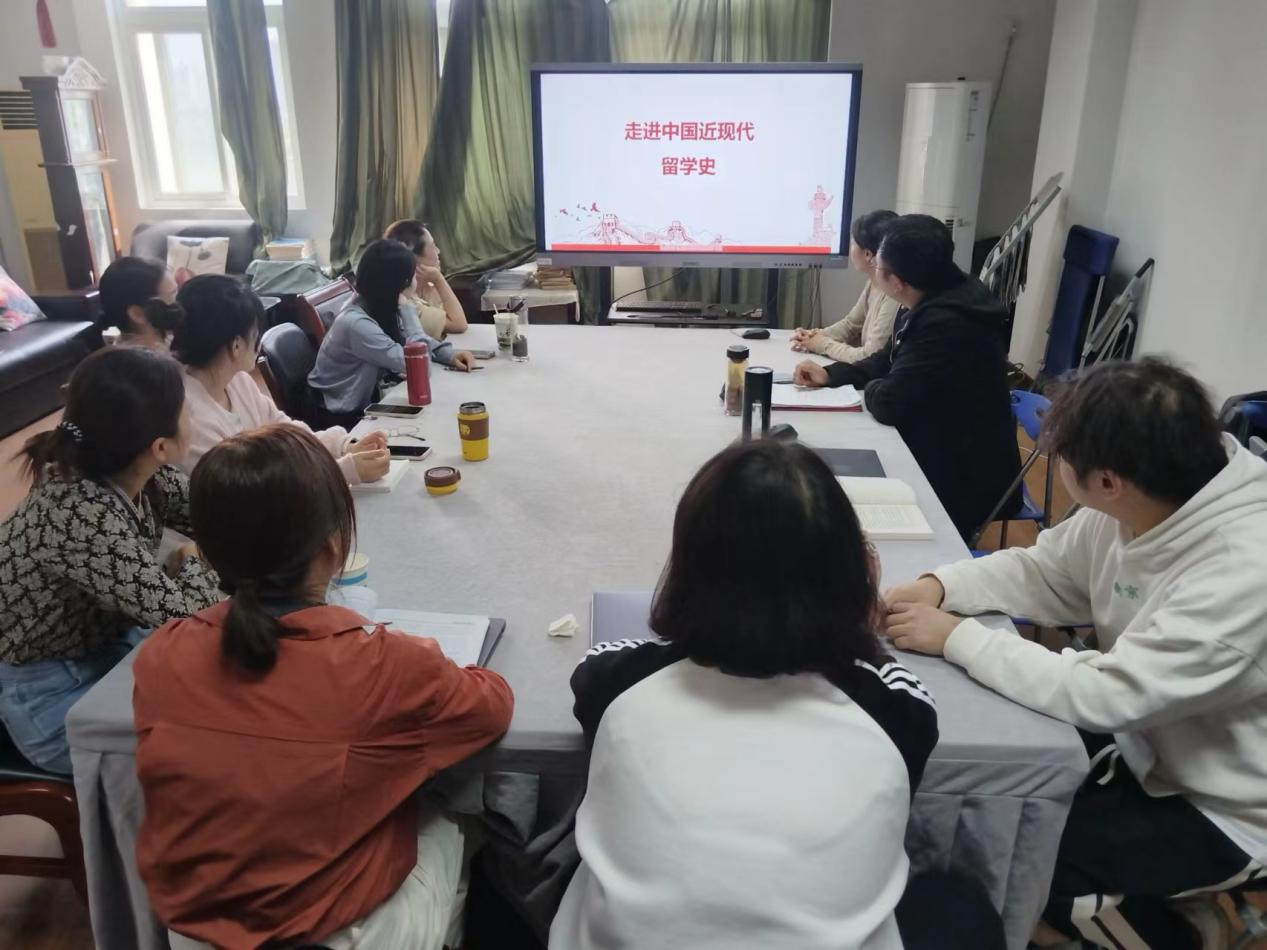 本次集体备课会包括三个环节。首先,由杜静静老师围绕“中国近现代留学史”这一主题进行示范教学,袁倩老师就“延安大学研修基地研修班”学习期间的所见所闻、感悟体验进行了总结分享。其次,高军老师就新学期四史课程相关情况做了提醒和说明,包括教材推荐、课程资料、线上学习任务、意识形态安全等。最后,集体学习了习近平总书记《论教育》中的“统筹推进教育科技人才体制机制一体化改革”相关内容,并进行了交流讨论。