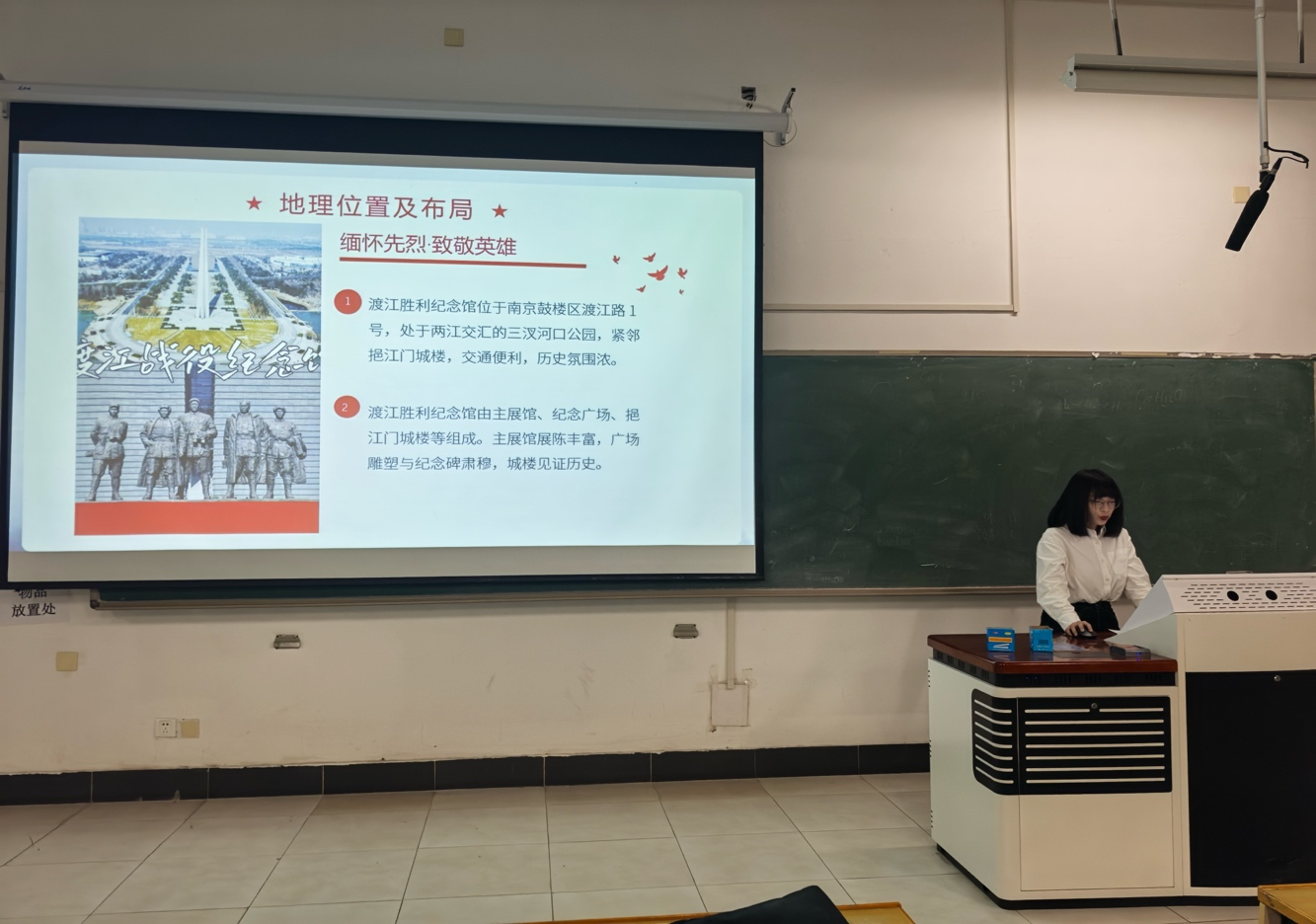 教研室各位老师从本学期所有参加本门课程学习的员工内遴选出来了十二个代表性佳作进行展出。同学们结合所学的历史知识,通过理论联系实际、线上党史故事学习与线下红色场馆实地参观访问相结合的方式,将自己在南京本地或省外现场打卡的重要历史遗迹进行了声情并茂的呈现。经过整个学期的学习探究,他们能够以更新的角度,运用唯物史观理论正确地评判历史问题。同学们结合图文并茂的精美幻灯片,认真讲述了南京大屠杀遇难同胞纪念馆、渡江战役纪念馆和中山陵、梅园新村纪念馆和雨花台革命烈士纪念馆等本地历史文化地标的深厚内涵,还有些同学将家乡或其他省外革命文化素材进行了介绍,辅以触摸历史的灵魂拷问,他们以通达晓畅的文笔将参会师生带入了特定的历史情境。通过随拍照片、录像或电子相册以及观后感悟等多种形式的展出,为大家奉献了一台精彩纷呈的文化大餐。