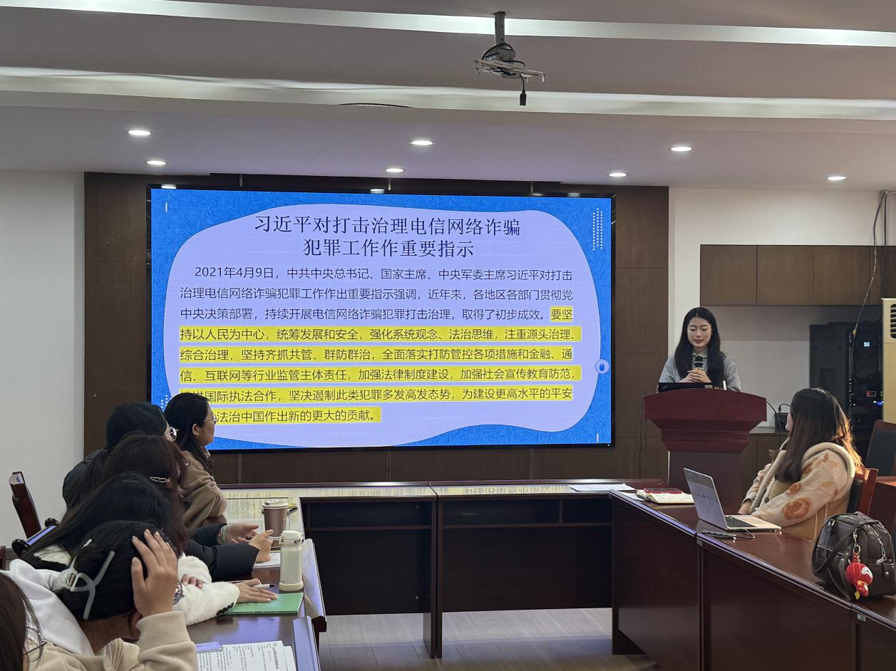 首先,王巍老师从马克思主义方法论的视角切入,号召同学们要强化辩证思维和风险意识,严格防范电信网络诈骗。其次,24级研究生代表王舒宇同学借助典型案例进行反电诈知识宣讲,提醒同学们要“警惕网络诈骗、守护财产安全”。最后,何云梦老师进行工作述职,并就同学们普遍关心的奖学金评审、外出请假流程、科研成果认定以及德育行为考核等问题进行答疑。此次主题班会顺利召开,既强化了员工的安全意识,也明晰了学业规划。公司将不断加强与员工的动态交流,确保研究生日常教育管理工作有序推进。