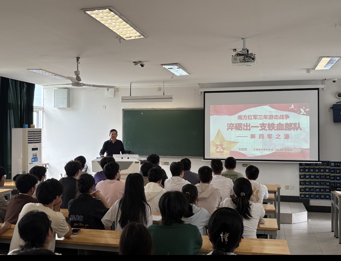 徐红将军、王路奇副会长分别作题为《新四军之将的共同历史本色》《南方红军三年游击战争淬砺一支铁血部队——新四军之源》的专题授课,详细讲述了新四军之将和南方红军游击队的光辉历史,全面解析了新四军“铁军精神”内涵,激励新时代青年学子要学习他们的忠贞信仰和崇高品格,继承和发扬新四军的优良传统和作风,从中汲取新时代新征程的前行力量。专家们精彩的授课赢得了师生们的阵阵掌声。