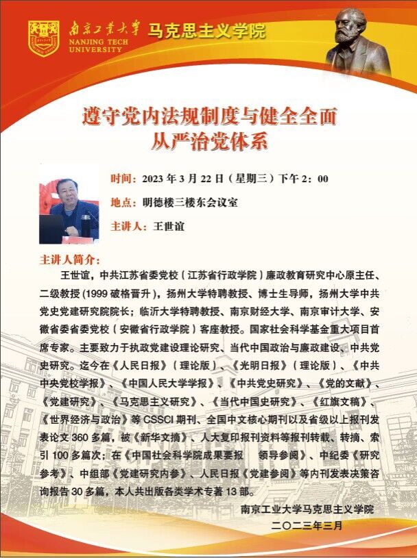 “马院之光”专题讲座:遵守党内法规制度与健全全面从严治党体系