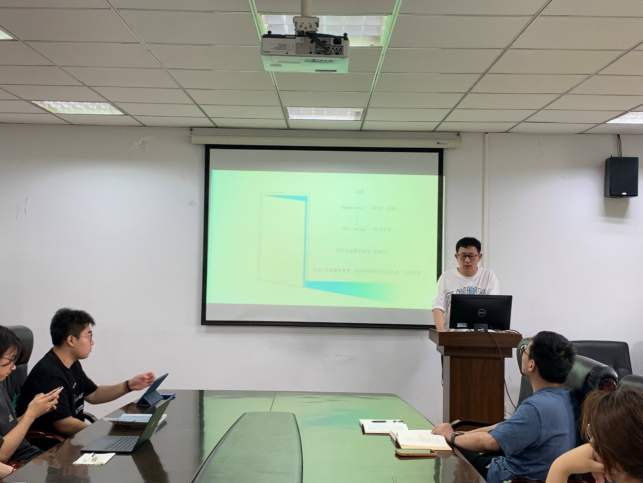 6月7日下午,公司2022级硕士研究生在明德第二会议室开展2022-2023学年第二学期“博学”读书沙龙活动,本次推荐阅读书目为陈嘉映著《何为良好生活:行之于途而应于心》。公司滕飞副教授受邀出席本次活动并作点评指导,本次活动由2022级思想政治教育专业蔡文渊同学主持。